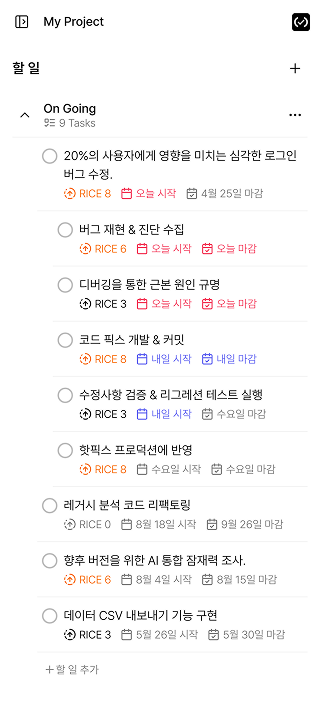 진행 중인 프로젝트의 전체 타임라인을 파악하는 것은 현명한 자원 계획에 필수적입니다. 우선순위와 마감일을 한눈에 확인하고, 팀의 노력을 가장 필요한 곳에 배분하세요.